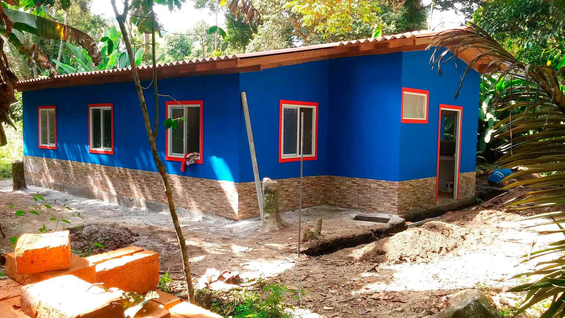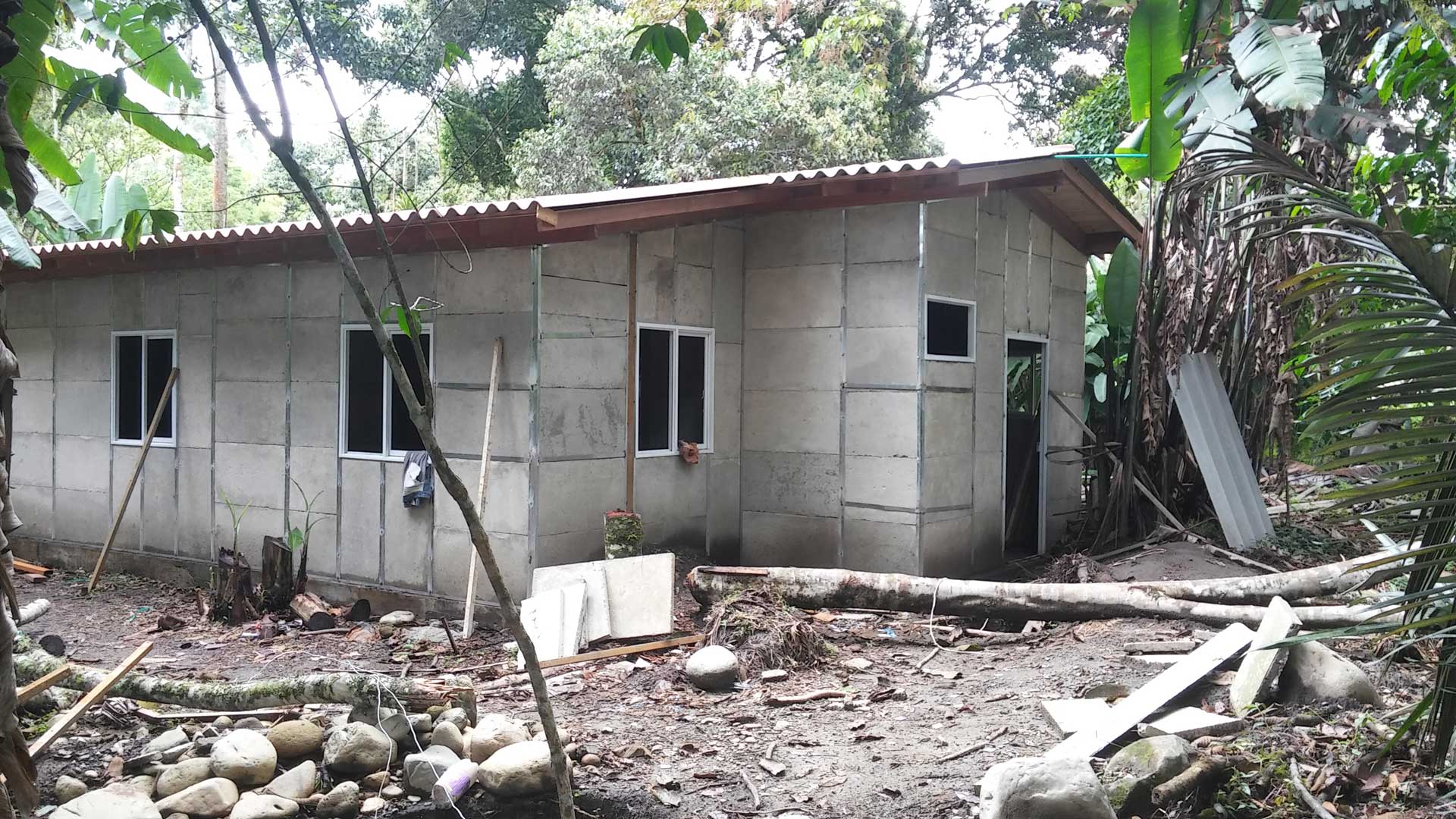 Incluye: placa de piso de 10 cm de espesor, muros en plaquetas de concreto de 400 mm, techo en teja fibrocemento con correas en perfil metálico 4 x 8 calibre 20, ventanas metálicas calibre 20, puerta principal y trasera metálicas en calibre 20, puerta de baño en madera entamborada sin acabado, y sistema pozo séptico: tanque séptico de 1000 litros, filtro anaerobio de 1000 litros, trampa de grasa, y campo de infiltración.